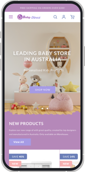 Baby Direct is a Melbourne-based supplier of mother and baby products. In line with its business philosophy, our design style also revolves around cute babies. When designing the online website, we retained the soft cloud elements of the original website. The whole website is dominated by the main color of Baby Direct's logo. The use of a lot of pink purple and pink blue is in line with the gentle tone of the entire brand. We used sticker elements to highlight the innocence of the entire website, and also let users add a touch of fun while shopping.